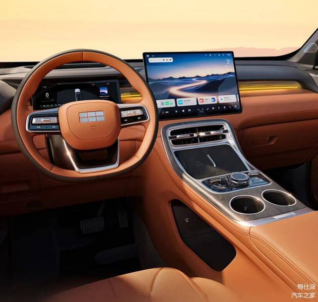 内饰设计是此次改款的重点,银河M7保留了传统液晶仪表,但是换用了15.6英寸横屏,搭载Flyme Auto座舱方案。原有的贯穿式隐藏出风口变更为了更传统的样式,尤其是两侧改为竖状镀铬格栅。副驾驶台也变为了更多层次,增加了氛围灯,而大面积软材质包裹、圆润倒角,配合水晶饰件和银色镀铬饰件,让车辆更具豪华感和居家感。