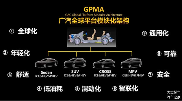 很多人吐槽广汽是合资车企,可事实上,人家早就搞出来了整车架构技术,GPMA架构,叫做全球平台模块化架构,他的这套技术,适配多种车型开发,广汽传祺的多款热销产品,都是基于这套系统开发而来的,还有纯电这边,广汽同样不甘落后,搞出来了一套叫做GEP平台,目的就是用来给自己的亲儿子埃安和其他纯电平台做支撑的。
