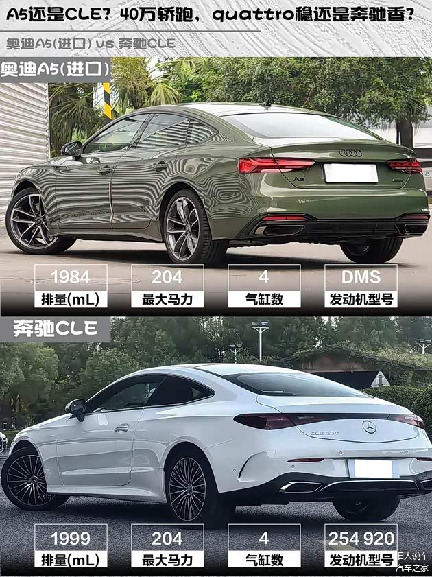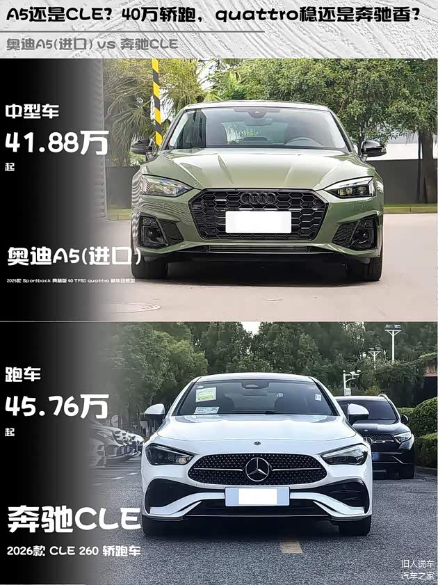最近后台好多人在问奥迪A5和 奔驰CLE怎么选?作为两款40万级进口轿跑,今天就从真实车主视角来个硬核对比!🔥