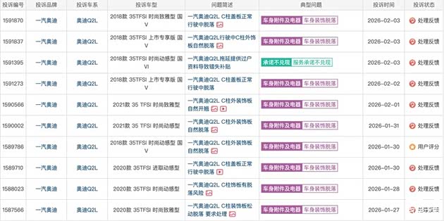 从产品角度看,Q2L作为奥迪的入门SUV,2018年国产上市后凭借品牌和设计吸引了不少消费者,2021年年销量曾接近4.9万辆。但材料耐久性缺陷无疑影响了用户体验,甚至构成安全隐患。