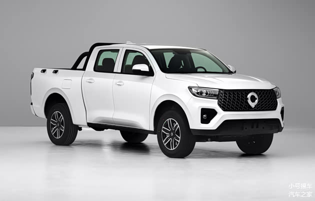 侧面造型方面,车身采用了双排皮卡造型,车顶线条比较圆润,搭配有鲨鱼鳍,腰线采用了贯穿式设计,点缀出了车身侧面的层次感,同时也让视觉效果显得修长大气;轮眉和侧裙部分设计有隆起的筋线,有着一定的肌肉感;轮毂采用的是六幅式造型,风格比较简洁。