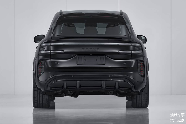 从外观来看,新车延续了极氪品牌近期的设计语言,但在细节上进行了更明确的区分。申报车型整体采用深色处理,包括前保险杠、侧裙、后扩散器以及轮圈等处均以暗色呈现,同时在前唇、侧窗框、外后视镜等部位加入了碳纤维材质点缀。车辆前后包围造型具有明显的立体感,通风口设计也更为突出,配合红色涂装的制动卡钳,进一步强化了视觉上的运动气息。车尾装配了尺寸较大的电动扰流板,在需要时可提供额外的空气动力学支持。