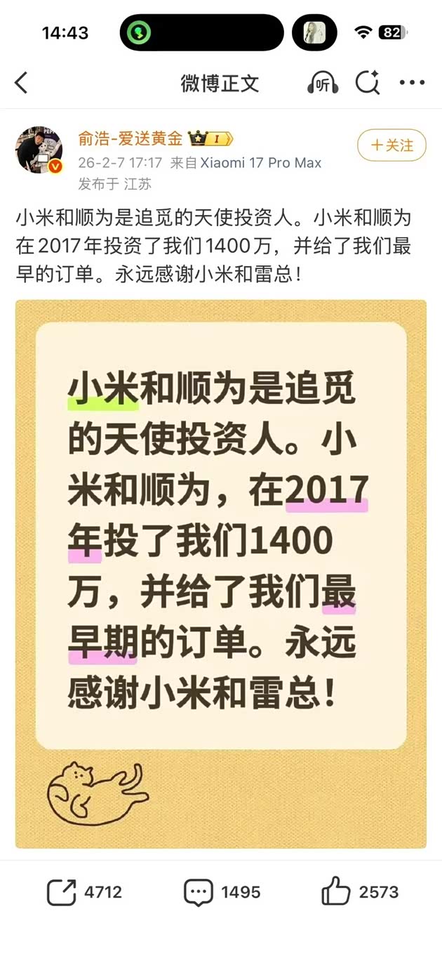 俞浩公开致谢雷军的举动包含更深层的商业算计。