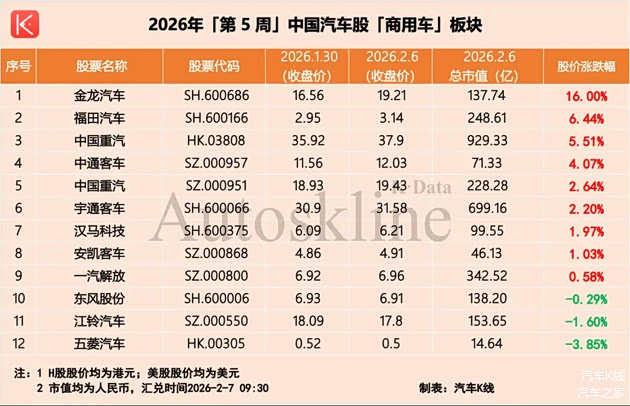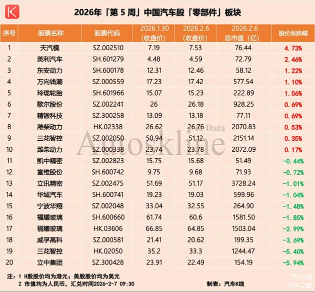 从本期始,《汽车K线》将天汽模(002510.SZ)收录至零部件板块,由此统计在册的中国汽车股达到136只,上市公司合计113家。