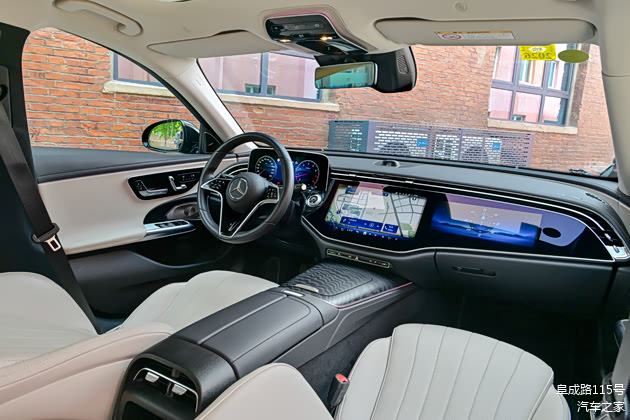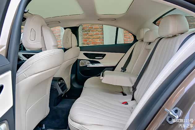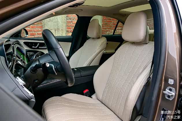 内饰设计则展现了奔驰对豪华的独到理解。进入座舱,目光首先被12.3英寸全液晶仪表盘、14.4英寸中控屏以及12.3英寸乘客显示屏组成的超级联屏所吸引,屏幕显示细腻,色彩表现艳丽,操作流畅度媲美旗舰智能手机。中控台大面积采用ARTICO 皮质包覆,搭配黑色岑木饰板与金属质感按键,触感细腻且阻尼质感出色。氛围灯可根据驾驶模式自动切换,夜间行车时,灯光随音乐律动,营造出剧院般的沉浸感。