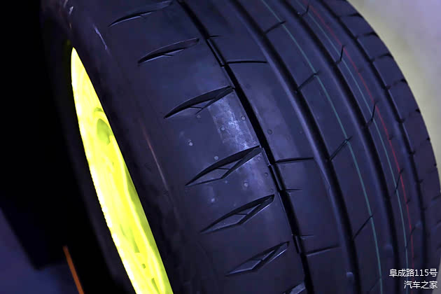 当前性能轮胎都在大力提升湿地操控性能,SC7也不例外。当我们观看SC7的胎面花纹时会发现它与前代产品显著的不同是两侧胎肩更加夸张的、像花掰一样的花纹,这并不是为了好看,它正是SC7的利器——刀刃式导流槽,可以有效破开水膜,提高排水流量,使排水效率大幅提升,大大减少水滑风险。轮胎在湿滑路面的抓地表现与轮胎花纹的排水效率直接相关,刀刃式导流槽为SC7带来了出色的湿地操控效果。