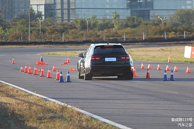 为了进一步考验SC7轮胎的刹车性能,我来到了驾驶奥迪RS6进行ABS紧急变线体验科目。这个科目的操作要点是直线加速到80km/h以上,突然发现前方有障碍物,立刻实施紧急制动,并变线以躲避障碍物。这是一项非常实用的公路驾驶技巧,同时对轮胎也提出了很高要求。SC7不但为奥迪RS6带来了出色的提速效果,让大马力动力得以瞬间爆发,在极限制动时更是实现了指哪打哪,不但制动快,还提供了精准的转向。