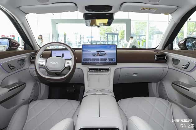 视线再到车内,风云A9L座舱设计遵循主流审美,呈现环抱座舱、简约中控,但整体座舱品质感较好,这离不开在用料、座椅方面花费的功夫。