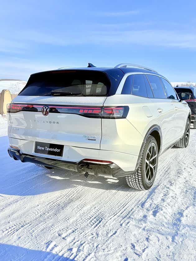 外观方面,从曝光的实车图来看,新款揽巡在外观上进行了明显调整。车头部分采用更为方正、简洁的设计语言,一条贯穿式LED日行灯带横向延伸,并与两侧前翼子板相连,中间搭配可发光的“VW”标识,提升了前脸的辨识度与科技氛围。