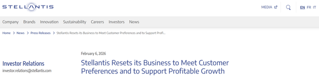 车东西2月9日消息,日前,Stellantis集团发布了一份关于业务重组和2025年下半年财务业绩预告的公告。
