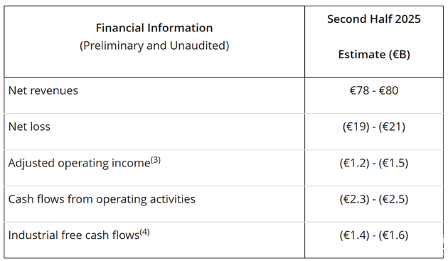 而在2025年上半年,Stellantis集团净亏损约为23亿欧元(约合人民币188亿元),通过计算来看,Stellantis集团在2025年的净亏损预计将在约213亿欧元(约合人民币1750亿元)至233亿欧元(约合人民币1914亿元)之间。