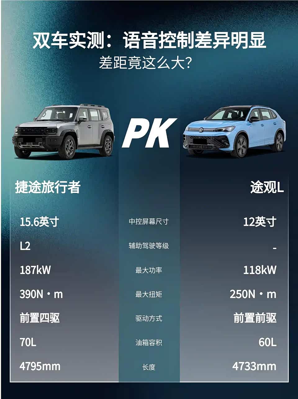 15万级硬派SUV智能配置实测,捷途旅行者2026款 2.0TD XWD发现对比途观L 2025款出众款300TSI自动两驱龙腾版,差距比想象中还大!🔥