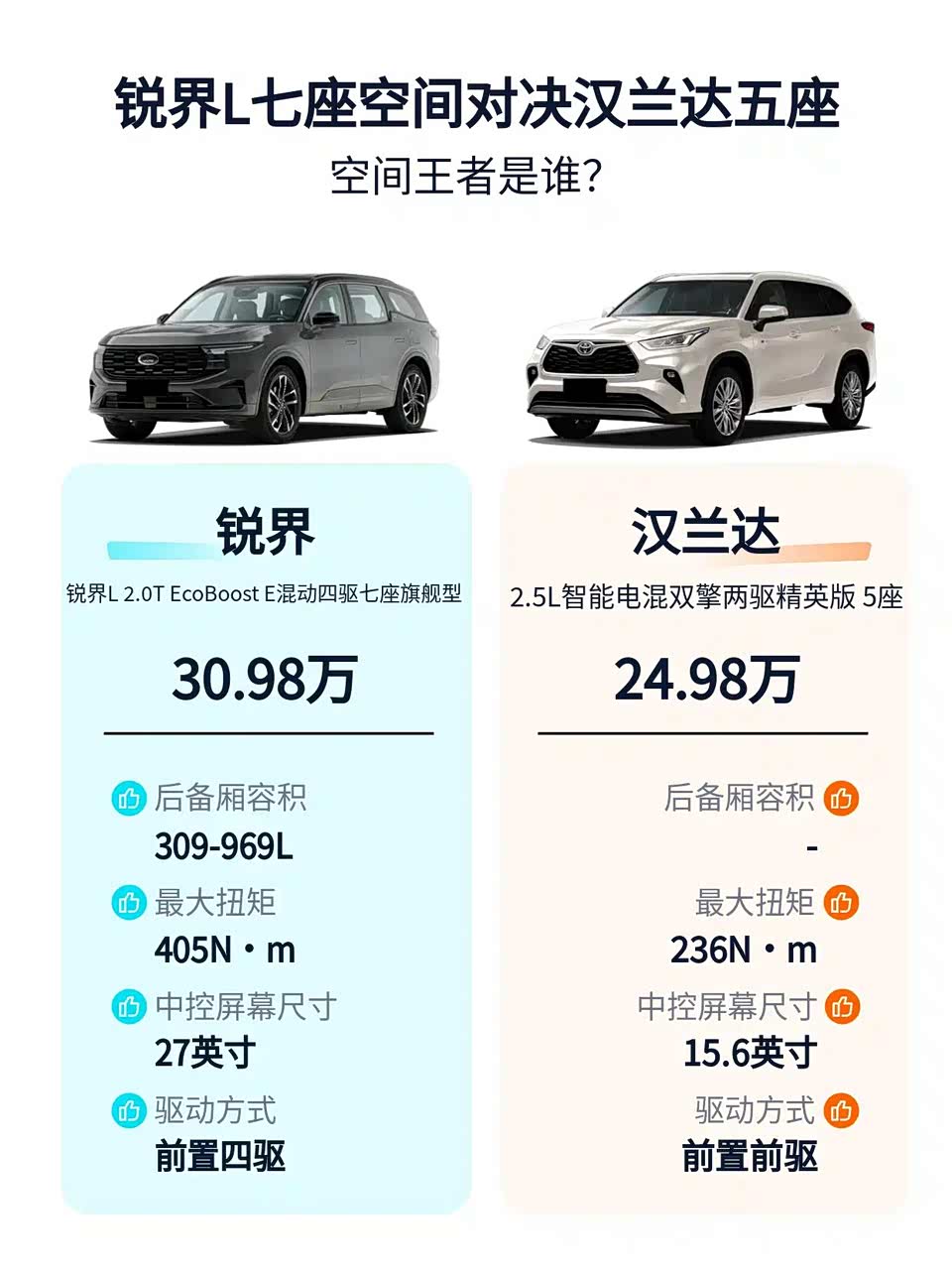 总结:锐界L适合长途多口之家,汉兰达胜在省油保值!你会为全家舒适还是钱包厚度买单?👇