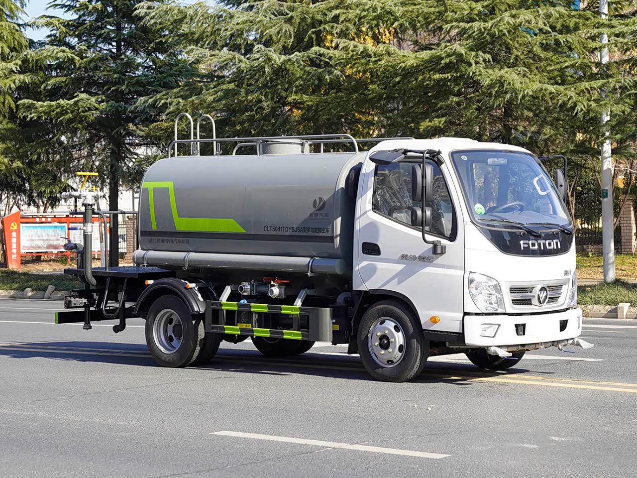 - 作业功能:前冲、后洒、侧喷、高位花洒、尾部绿化水炮,可调节柱状 / 雾状,适配多场景作业。