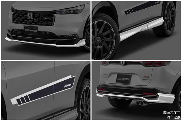 无限 Mugen 为 缤智 RS 准备了全新设计的前保杆下扰流,强化车头面容的视觉张力,车侧则以空力侧裙/后视镜盖、强调速度感的专属饰贴,以及脚下 18 寸 CU10 多辐式双色铝圈作为亮点,至于车尾也相当精彩,在车顶后端及尾门中央新增扰流翼,搭配新增后保杆下分流设计与单边双出尾管,呈现出更加鲜明强烈的热血气息。