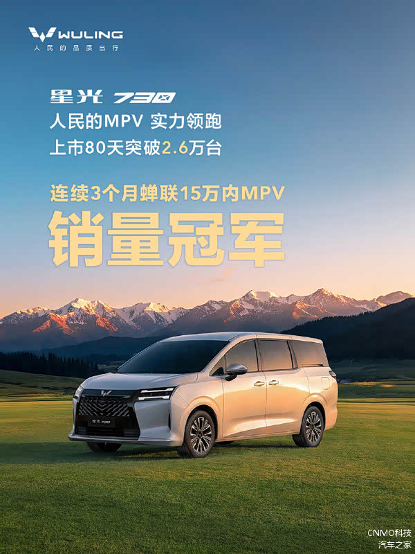 【CNMO科技消息】2月10日,五菱汽车官方正式宣布,旗下车型 星光730上市仅80天,累计销量便突破2.6万台,同时成功实现连续三个月蝉联15万级MPV细分市场销量冠军。