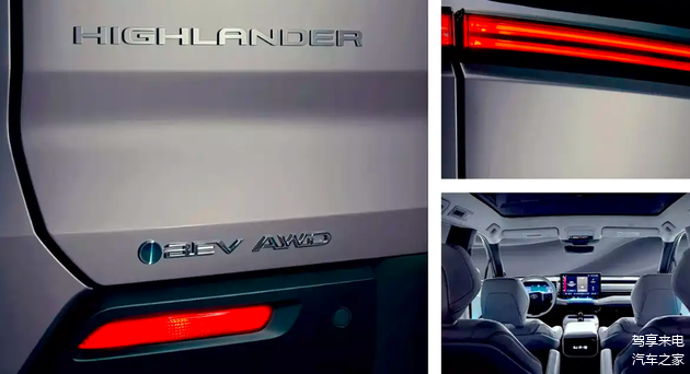 动力方面,新车将搭载纯电动力系统,提供双电机四驱系统,尾标有BEV、AWD、HIGHLANDER三个尾标。