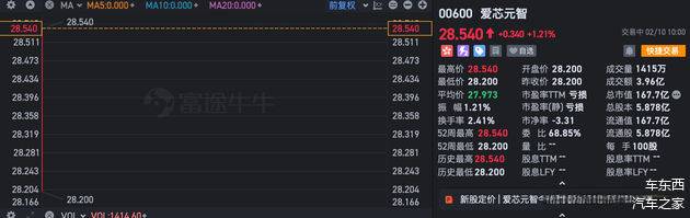 开盘一个半小时,爱芯元智一度涨2.13%,报28.8港元/股(约合人民币25.92元/股),总市值来到了169.3亿港元(约合人民币152.37亿元)。