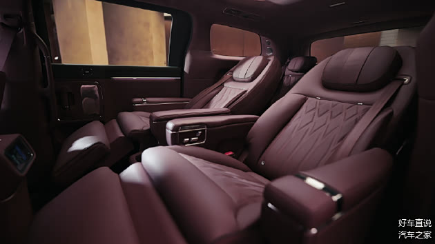 布局上,新车采用2+2+3七座设计,二排座椅可实现45°迎宾、90°观景、180°对坐旋转,官方将其定位为移动会议室、全家大客厅。