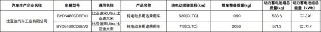 截至目前,比亚迪宋Ultra EV仅申报了单电机版本,支持搭载最大功率240千瓦或270千瓦的驱动电机。另外据工信部数据显示,比亚迪 宋Ultra EV将匹配75.616千瓦时、82.732千瓦时磷酸铁锂电池组,对应的CLTC工况纯电续航里程分别为620公里、710公里。