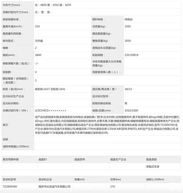 动力方面,新车申报了高/低功率两种单电机车型。高功率版本的最大功率为270千瓦,低功率版本为240千瓦,最高车速均为210公里/小时。这样的动力配置能够满足大多数用户的日常驾驶需求。