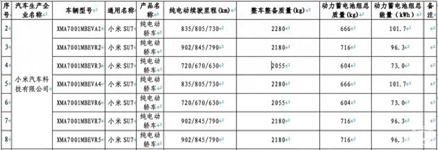 近日,工信部发布的《减免车辆购置税的新能源汽车车型目录(第二十七批)》披露了新一代 小米SU7的续航和电池信息。根据目录显示,新车将提供73千瓦时、96.3千瓦时和101.7千瓦时三种规格的电池包,对应的CLTC工况续航里程覆盖630公里至902公里区间。这一数据相比现款车型有显著提升。