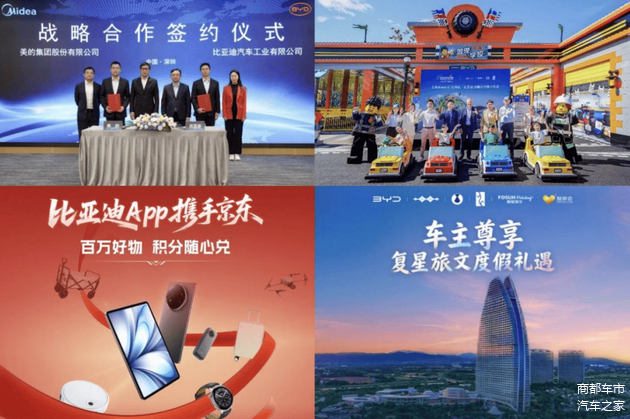 如果说技术是情感价值的基石,那么生态权益的持续扩圈,则让这份温暖延伸至用车之外的生活。比亚迪深谙用户对品质生活的追求,不断升级车主用车生态,从 “卖一台车,交一个朋友” 到 “提供一种品质生活方式”,让每一次选择都成为开启美好生活的钥匙。盘点比亚迪2025年的重大跨界合作:与美的联手打造“车控家”、“家控车”双向联动,串联起居家与出行的无缝温情;京东商城接入比亚迪App,丰富积分生态,将品牌暖意从用车领域延伸至品质生活的方方面面;与复星旅文达成战略合作,实现全品牌车主一键兑换复游会高等级会员,比亚迪将高端度假区会员权益纳入车主福利,车主轻松解锁三亚·亚特兰蒂斯、Club Med地中海俱乐部等全球高端目的地的专属礼遇,为车主的闲暇时光注入惊喜与仪式感;比亚迪还成为乐高乐园在全球范围内合作的首个中国汽车品牌,为亲子家庭打造标杆出行游玩体验。这些生态权益的扩圈并非简单的跨界联名,而是基于千万用户需求的精准洞察,让比亚迪车主身份的获得感与附加值持续攀升。