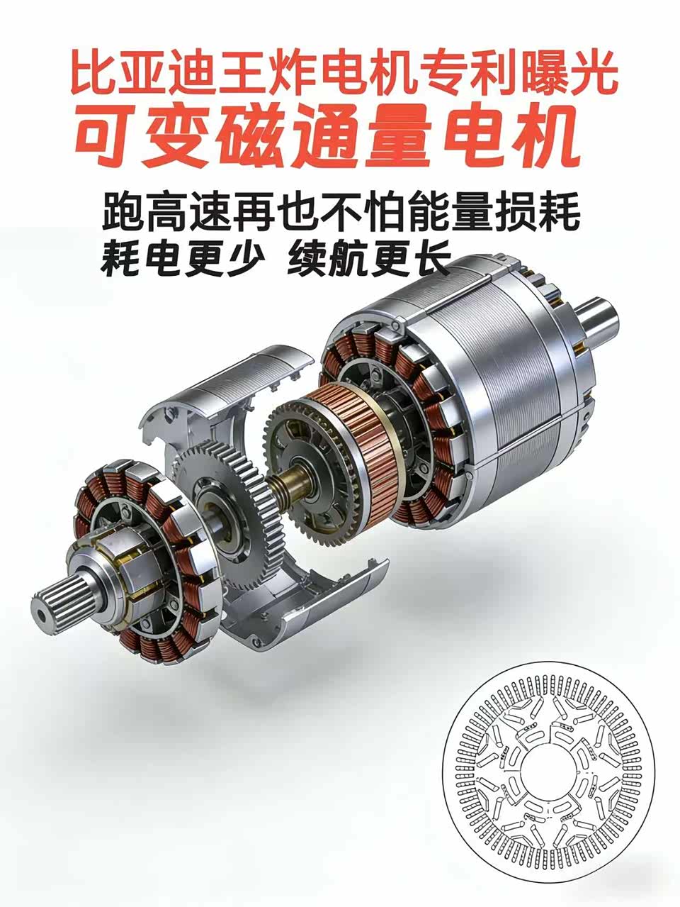 比亚迪的大招来了?可变磁通量电机的专利曝光!解决了传统永磁电机高速效率低的问题,看来是能耗又会优化了。高速效率比传统永磁电机高5-8%,120km/h等速续航能多跑15%左右。虽然成本比传统电机高了10%-20%,但是因为稀土用量减半,所以整体减重10-15kg更轻了,反正对动力、续航和轻量化来说都是好事儿。