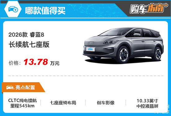2026款 睿蓝8的推出是一次精准升级,其强化了核心纯电续航里程表现,并保留了空间灵活性方面的优势,再加上极具杀伤力的价格,成为了很适合家庭用户的务实纯电MPV之选。那么新车应该如何选择?本期《购车指南》为您解答。