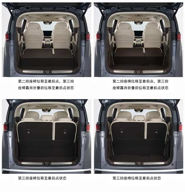 空间布局方面,新款D9 EV延续现款设计,采用2+2+3的7座布局。第二排座椅可前后滑动但靠背不可折叠,第三排座椅靠背可折叠且支持前后滑动,第三排座椅支持4/6比例放倒,但放倒后与后备厢底板不能完全平齐。