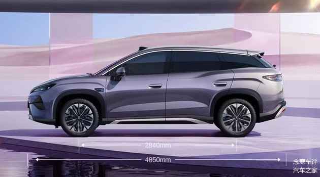 轴距2840mm,比宋L EV短了那么一点点,但车身反而更长了。这多出来的长度全给到了后备箱和车身结构。