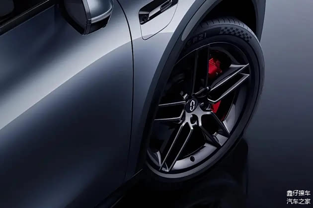车身侧面,新车整体造型简洁流畅,门把手为半隐藏式设计,搭载造型动感的五辐轮圈,并配备了红色刹车卡钳。车身尺寸方面,新车长宽高分别为4960/1985/1736mm,轴距为2950mm。