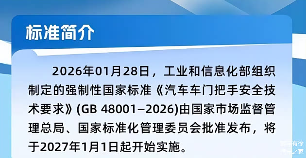 这一标准的出台,标志着曾风靡汽车市场的隐藏式门把手,正式迎来规范化整治。