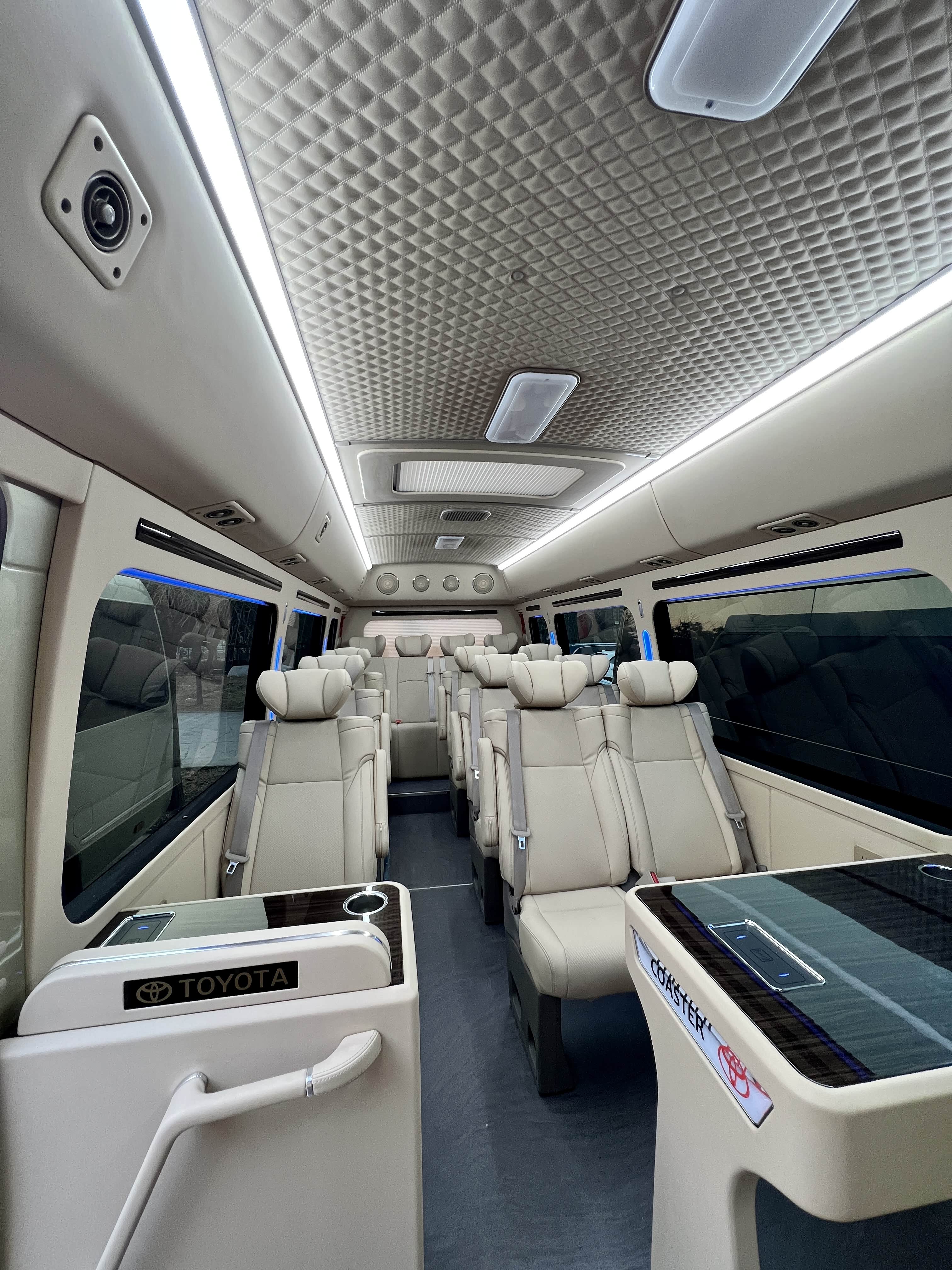 丰田考斯特17座,不只是“多坐几个人”的选择,而是一种更高效、更体面的出行解决方案。 在实际使用中,17座的最大优势是空间利用率极高。它既能满足团队出行、企业接待、政企公务、旅游包车等多场景需求,又不会像大型客车那样显得笨重,城市道路通行、停车和调度都更加灵活。这种“刚刚好”的尺寸,让它成为许多单位和车队的主力车型。 从乘坐体验来说,考斯特17座并非传统意义上的“通勤工具车”。经过合理布局后,每个座位都能保证舒适的腿部空间与头部空间,长时间乘坐不易疲劳。再配合静谧性优化、空调循环系统与座椅升级方案,无论是商务出行还是长途接送,都能保持稳定、安静、舒适的乘坐感受。 更重要的是,它具备极强的可定制性。你可以选择实用取向的耐用配置,也可以升级为商务接待风格,加入隔断、影音系统、商务桌、电源接口等功能,让车内空间从交通工具升级为“移动接待室”或“移动办公空间”。同一台车,可以服务不同层级的客户需求。 在经营层面,考斯特17座还有一个被很多用户认可的优势:高出勤率 + 高保值率。它结构成熟、可靠性强、维修成本可控,适合长期高频使用;同时在二手市场也具备较强的流通性,是一台用得久、卖得值的车型。