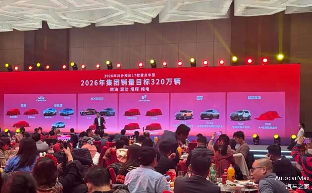 1月6日,奇瑞集团发布2026年销量目标:集团目标320万辆,较2025年增长14.03%。
