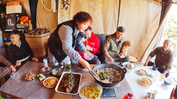 去年在营地过年的车友又回来了,关姐支起铁锅炖血肠,为大哥接风