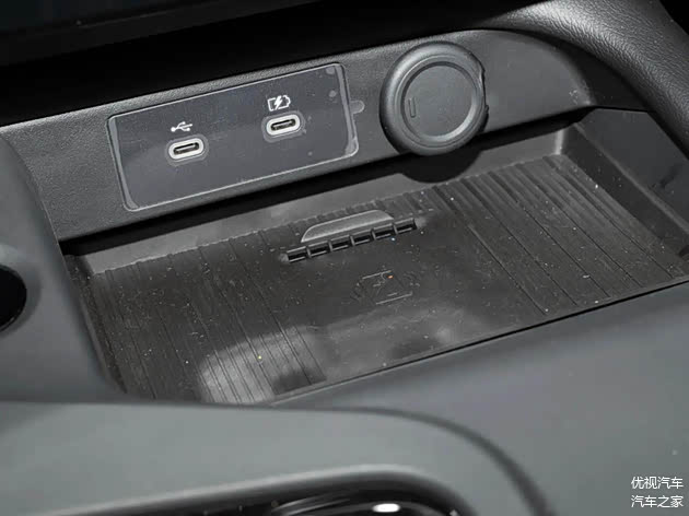 方向盘是双辐式设计,符合其家用轿车的定位。空调出风口为矩形样式,往下则是手机无线充电面板,并且带有通风口,以防止充电时手机过热。