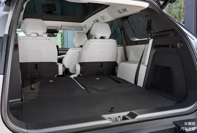 走进车内,内饰的设计风格其实和当下新能源车型的理念是很接近的,因为它选用了悬浮式的显示屏和全液晶的仪表,但是它整个内饰给人看上去的感觉,并不显得有科技感,为什么?因为它悬浮式的显示屏和悬浮式的液晶仪表感觉都比较厚重,并没有那么纤薄的感觉。其次它的换挡逻辑采用的是那种小挡把的风格,这个也是我认为不怎么喜欢的地方。不过它的内饰也有优秀的地方,那就是整个内饰的豪华感不错,因为它选用的是米白的色调装饰,显得还是比较好看的。除此之外,这款车型的全三排座椅均采用SofTex人造皮革作为标准材质,前排座椅加热也是标准配置,前排座椅通风和第二排座椅加热均为选配。全车提供18处储物空间,第三排座椅放平后提供超过1274L的后备厢储物空间。