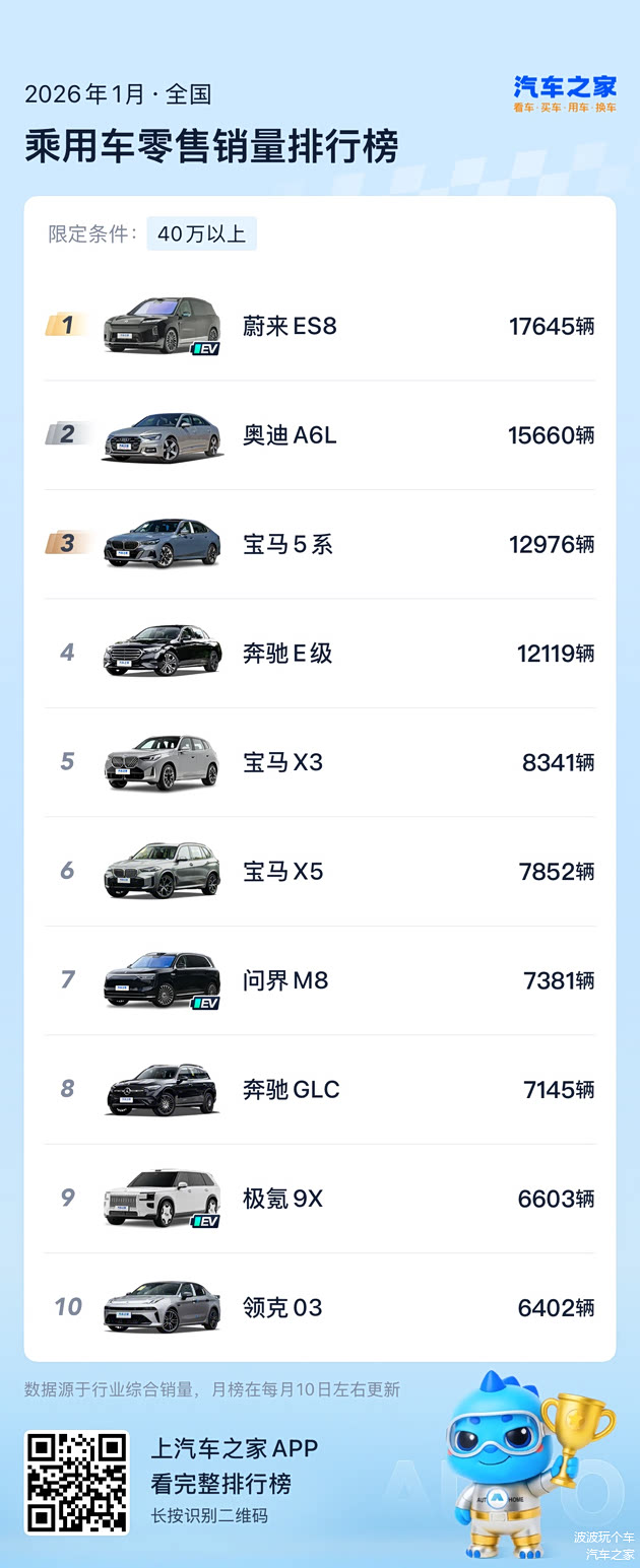 ES81月卖了17645台,继续霸榜大型SUV和40万以上市场,不分能源、不分座位、不分级别,实打实地把不分两个字做成了自己的标签。