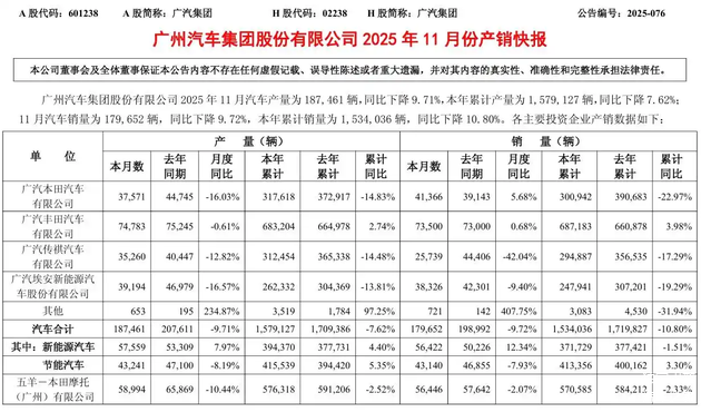 据财报数据显示,2025年前三季度,广汽集团单季度亏损43.12亿,其中第三季度亏损17.74亿。