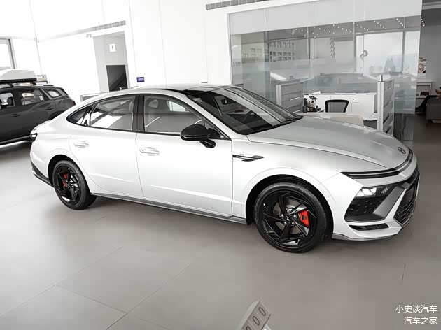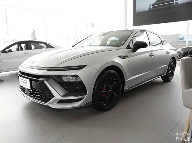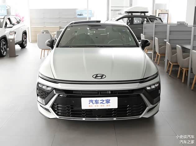我们首先来看新车的外观设计方面,索纳塔的前脸设计灵感源自“星际战舰”,通过参数化格栅与贯穿式LED日行灯的组合,营造出未来感十足的视觉效果。 多边形大嘴式中网搭配镀铬饰条,既保留了现代家族的辨识度,又增添了运动气息。 头灯采用分体式设计,主灯组内嵌LED光源,辅以自动水平调节和自适应远近光功能,确保夜间行车安全。 前保险杠线条凌厉,配合可点亮灯带,不仅提升了空气动力学效率,还强化了科技氛围。 整体而言,车头造型在稳重与激进间取得平衡,吸引追求个性的消费者。