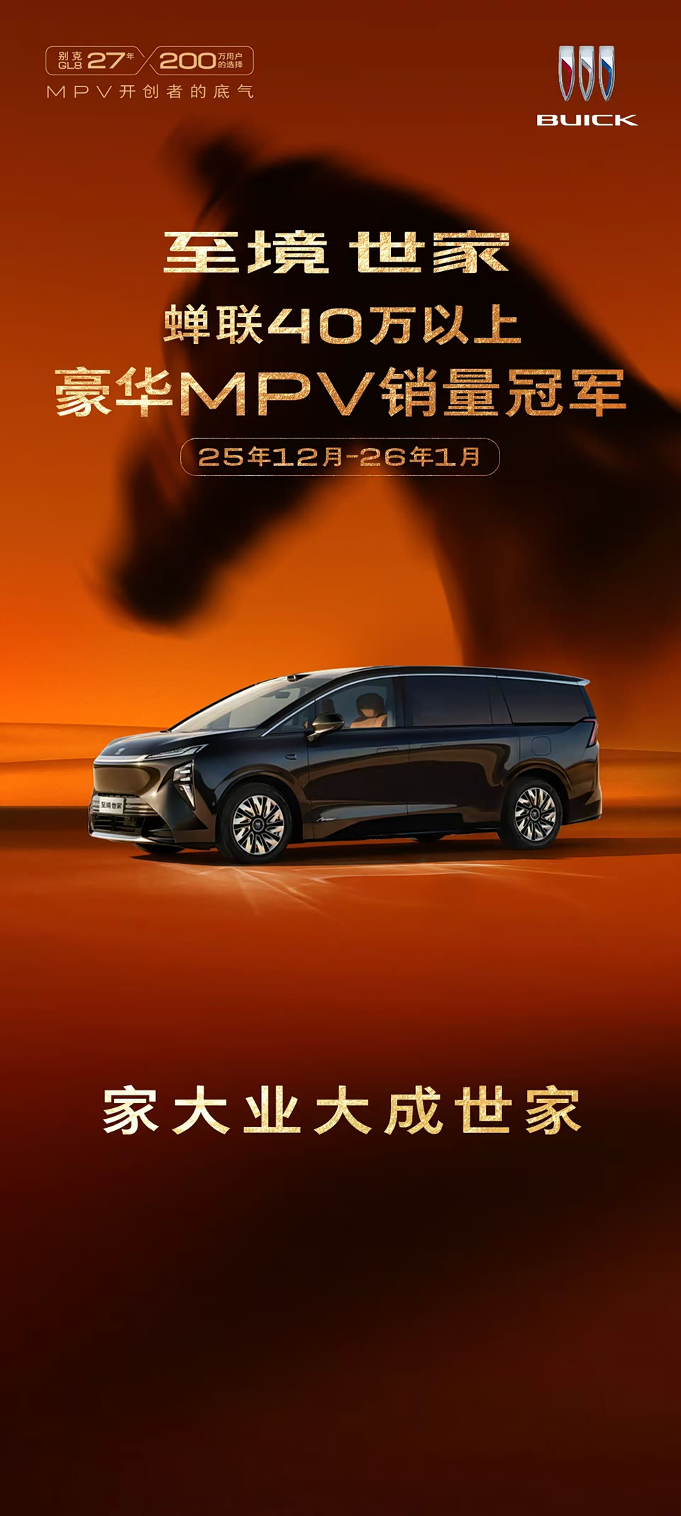 别克至境世家1月热销3145辆,稳居40万级以上豪华MPV销冠,销量超同级进口车总和;搭载五恒座舱与逍遥架构,纯电版上半年上市,并携手别克世纪,整体市占率超50%!#豪华MPV进入别克“双世”时间 #至境世家稳居40万级豪华新能源MPV冠军 #豪华MPV销冠背后的健康刚需