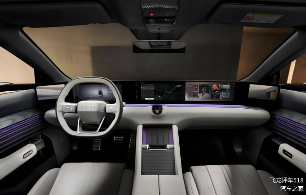 打开奥迪E7X的车门,坐进座舱,扑面而来的氛围与当下很多新势力车型截然不同。如今不少新势力为了追求“科技感”。整车的设计布局遵循奥迪“结构化建筑美学”理念。中控台配备了极具未来感的多功能方向盘,操控岛也变得更加简约,设有无线充电模块、两个杯架,实用性很强。科技感方面,更是配备了12.3英寸的全液晶仪表+27英寸贯穿屏与AI语音助手。用料和做工也更加上乘,河北师大的座舱采用了大面积采用软性材料包裹,触手可及之处,几乎都是细腻的皮质或高级织物,触感温润细腻;细节之处,缝线工整均匀,看不到任何多余的线头,每一处拼接都彰显着德系工艺的严谨。配备了环绕四周的多色氛围灯,还加入了电吸门。