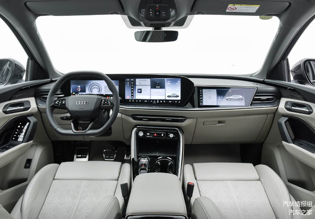 奥迪新Q5L的内饰则展现了德系豪华的精密与科技感,线条简洁、层次分明,以软性材质、真皮及金属饰条为主,豪华感符合同级别标准。全系标配11.9英寸仪表+14.5英寸OLED中控屏,内置全域生态系统,集成高德地图、爱奇艺、微信等。