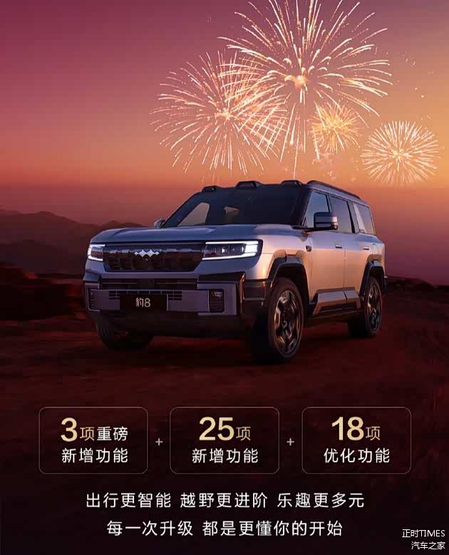 近日,方程豹豹8车型开启第七次OTA升级,带来28项新增功能及18项功能优化,涵盖越野性能、智能驾驶辅助、智能座舱体验等多个维度。