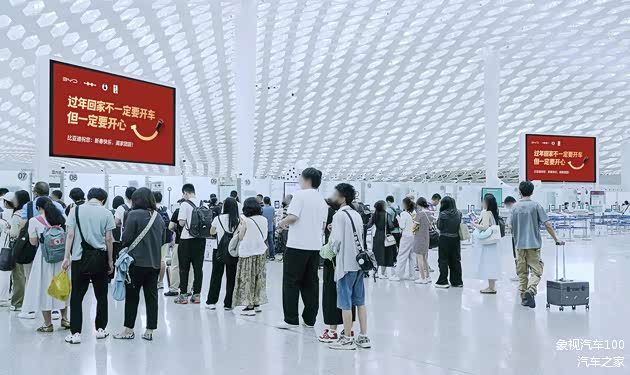 比亚迪把广告语写进机场,恰恰是写给了所有归家的人:你看,连造车的人都告诉你,车不是回家的必选项,你何必用别人的尺子丈量自己的归途?