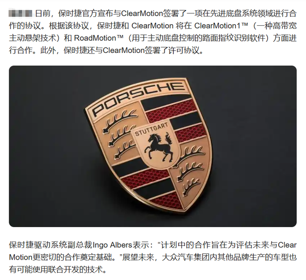 与此同时,另一个值得关注的信息是,2024年4月保时捷官方宣布与美国初创公司ClearMotion签署了一项在先进底盘系统领域进行合作的协议,合作的项目便是后者研发的集成式主动悬挂系统将应用于保时捷新车,这意味着对于主动悬架的技术路径,保时捷的逻辑是:不存在“选一条路”,而是全都要。