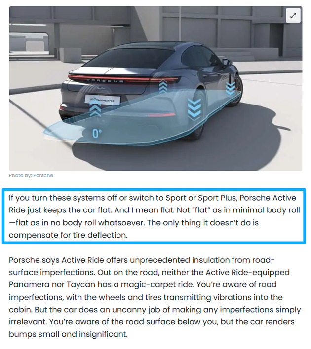 确实,PAR在应对“劈弯”等比较极限的操控场景下能带来十足支撑性,把保时捷的操控又往上推了一个层次,大坑沟坎也能应对,但也正是由于“分体式”的设定,使得其必须依赖液压管路连接中央泵阀和四个轮端的执行器,管路存在弹性变形,油液在急加速/急减速时也有惯量,在瞬时响应上会稍慢半拍,从而可能会导致其在某些高频、小幅、连续的起伏路面时舒适性欠佳,再加上其高昂的价格,导致这套系统的选装率并不高。