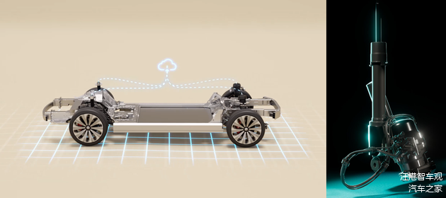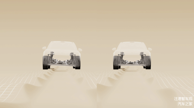 常见的可调节底盘只是按照预设好的软硬高低进行选择,而智能底盘则是在可调的基础上,具备更为快速的响应速度与更大的力度,同时会针对路面反馈情况进行主动“对冲”,并且,四个车轮端亦可以独立调节。