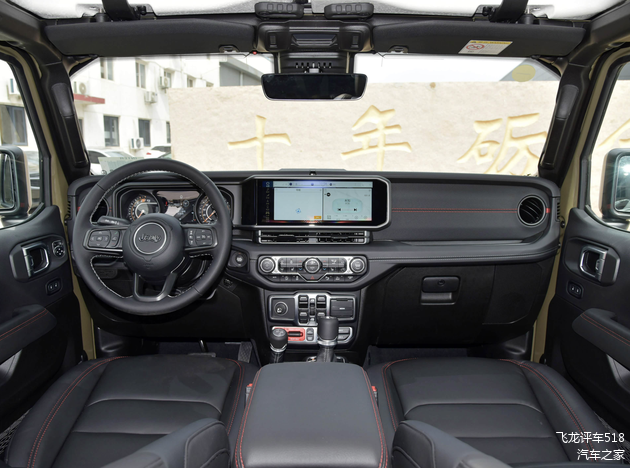 进入车内,Jeep牧马人Willys 392内饰的布局焕然一新,做工、用料和细节方面都进行了优化。红黑双色的搭配凸显出了年轻、运动的气息。大面积真皮面料的铺陈,再加上红色的双缝线,质感细腻,触感柔软。大量正圆形的设计,看起来更加舒服。T字形的中控台配备了8.4英寸全液晶仪表,12.3英寸的中控多媒体显示屏,带来了最直观的视觉冲击力。车内还配备了专属的Nappa真皮沙发座椅,支持加热、通风功能。同时车内还带有4个可自定义的辅助开关按钮以及配备了Alpine 9扬声器高级音箱系统。